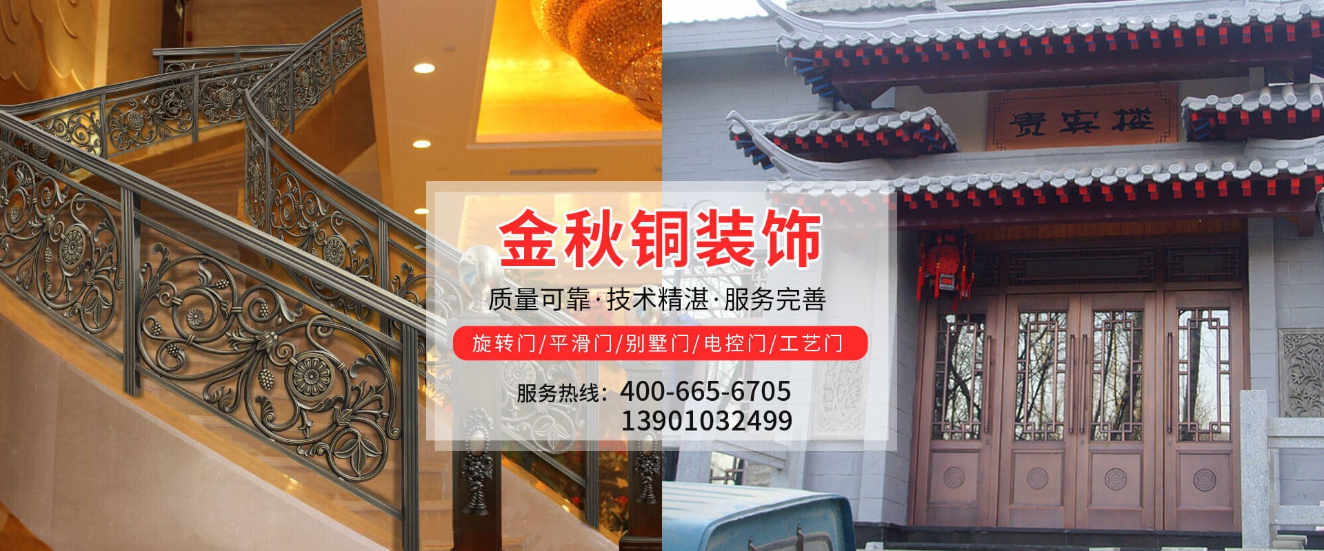 北京金秋銅裝飾材料有限公司是專業(yè)生產(chǎn)銅裝飾材料及設計、開發(fā)、制造、施工、售后服務為一體的大型綜合企業(yè)。可承接建筑銅裝飾工程及五星級酒店、別墅、博物館、樓樘管所等高檔銅裝飾項目;生產(chǎn)各種規(guī)格的旋轉(zhuǎn)門、平滑門、別墅門、電控門、工藝門、旋轉(zhuǎn)護欄、屋頂銅飾防水瓦、浮雕壁畫......